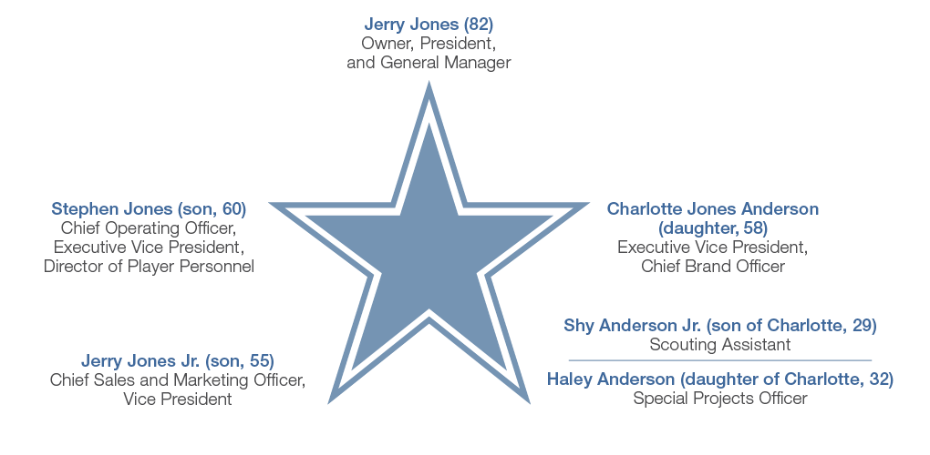 This generational success is the hard work of Jerry Jones, Owner and General Manager of the Dallas Cowboys. Since he kicked off his ownership in 1989, Jerry hasn’t just developed the team on the field, but the team at home too. Today, three generations of the Jones family, including Jerry’s three children and a few grandchildren, work within the organization.