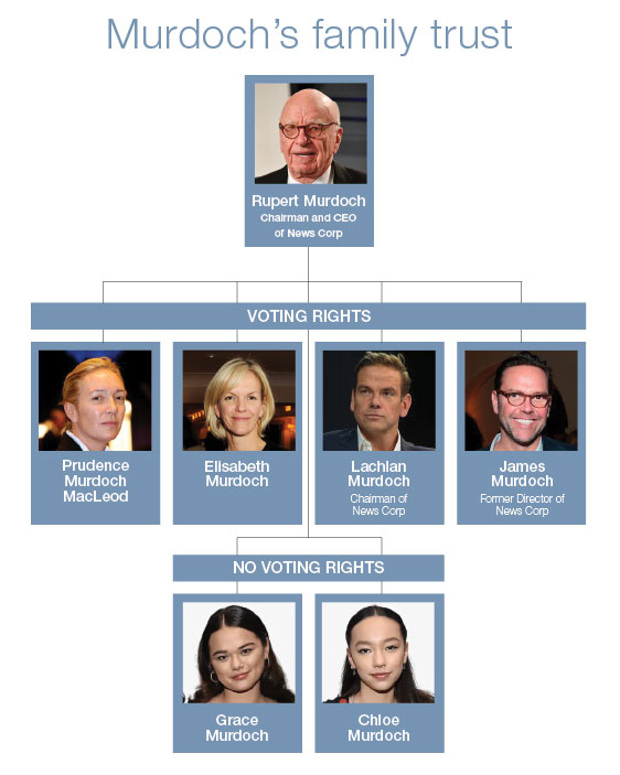 While the escalating trust conflict continues to set the Murdochs back, it also has far-reaching consequences for the business, the media industry, and the global community. One of News Corp’s substantial shareholders, hedge fund Starboard Value, has pushed to eliminate News Corp’s dual-class share structure, which gives the family disproportionate voting power (41%) despite only holding 14% of the company.